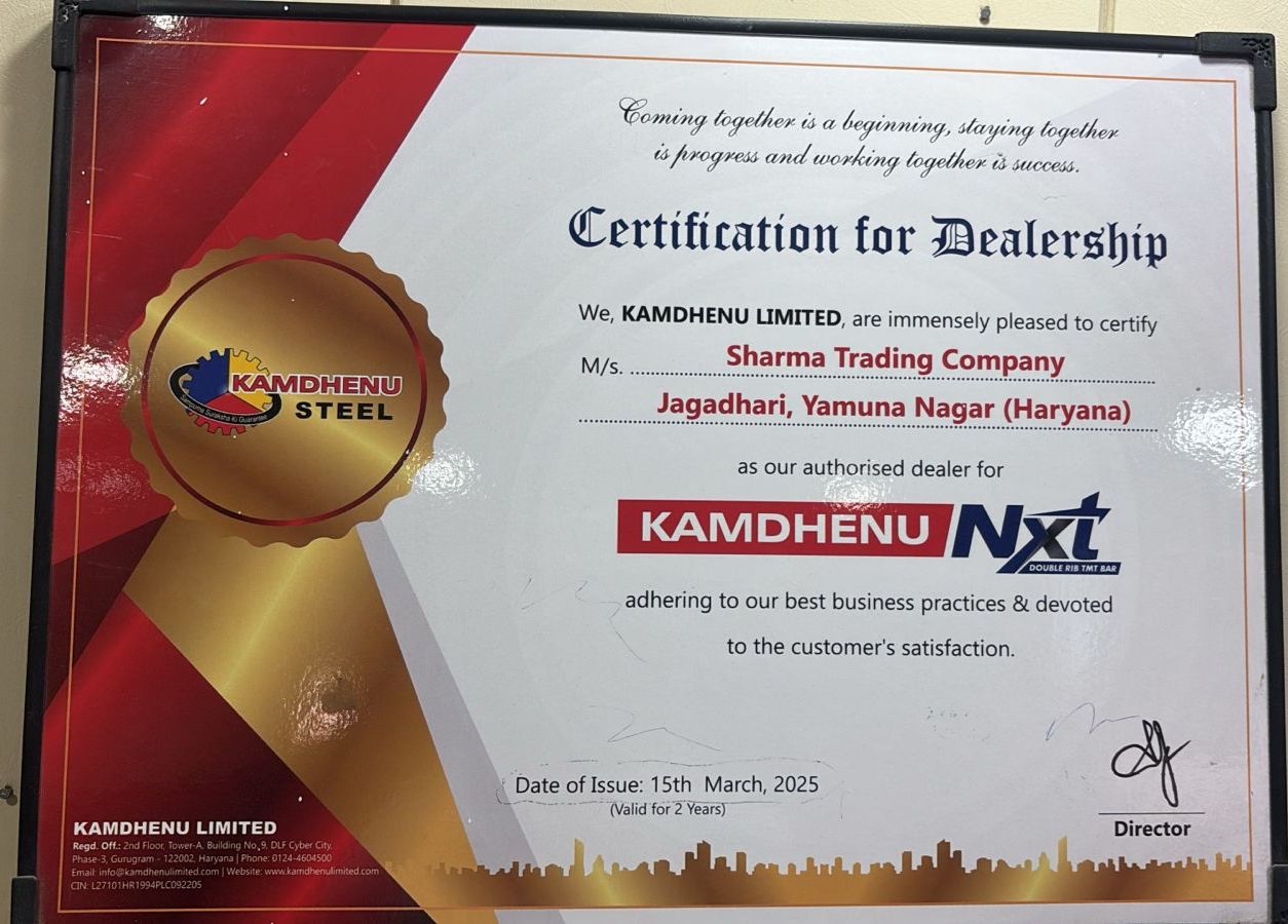 Sharma Trading Co. based in Yamunanagar, is an authorised dealer of Kamdhenu Nxt, No. 1 selling TMT steel brand in India.