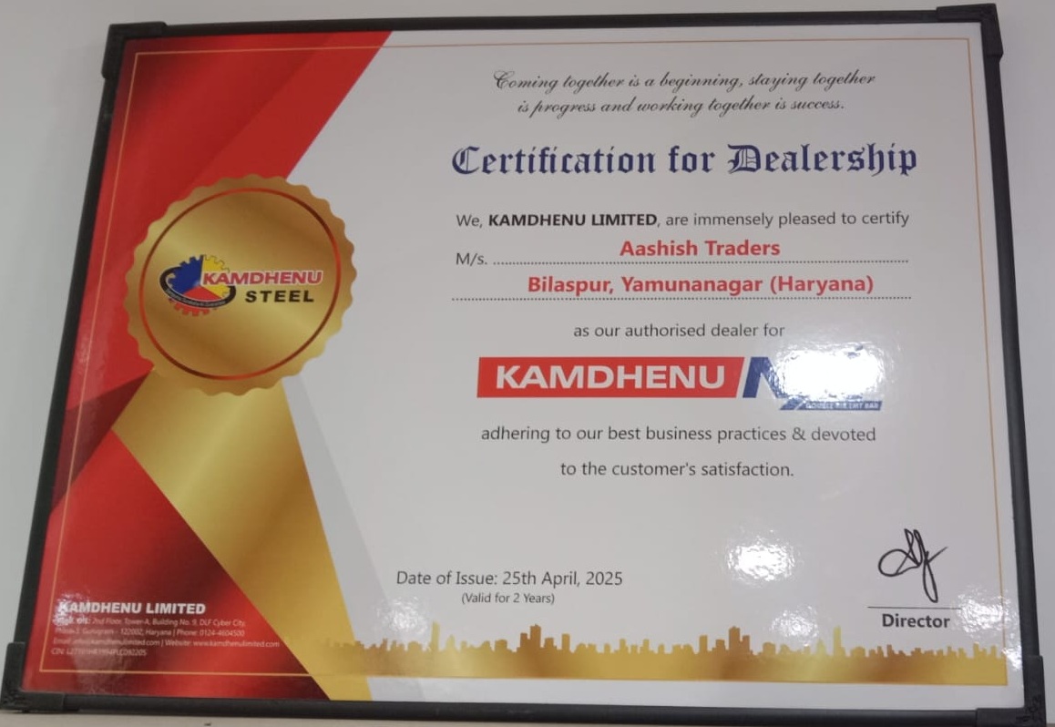Ashish Traders, based in Bilaspur, is an authorised dealer of Kamdhenu Nxt, No. 1 selling TMT steel brand in India.
